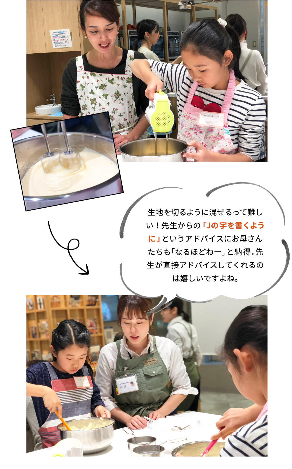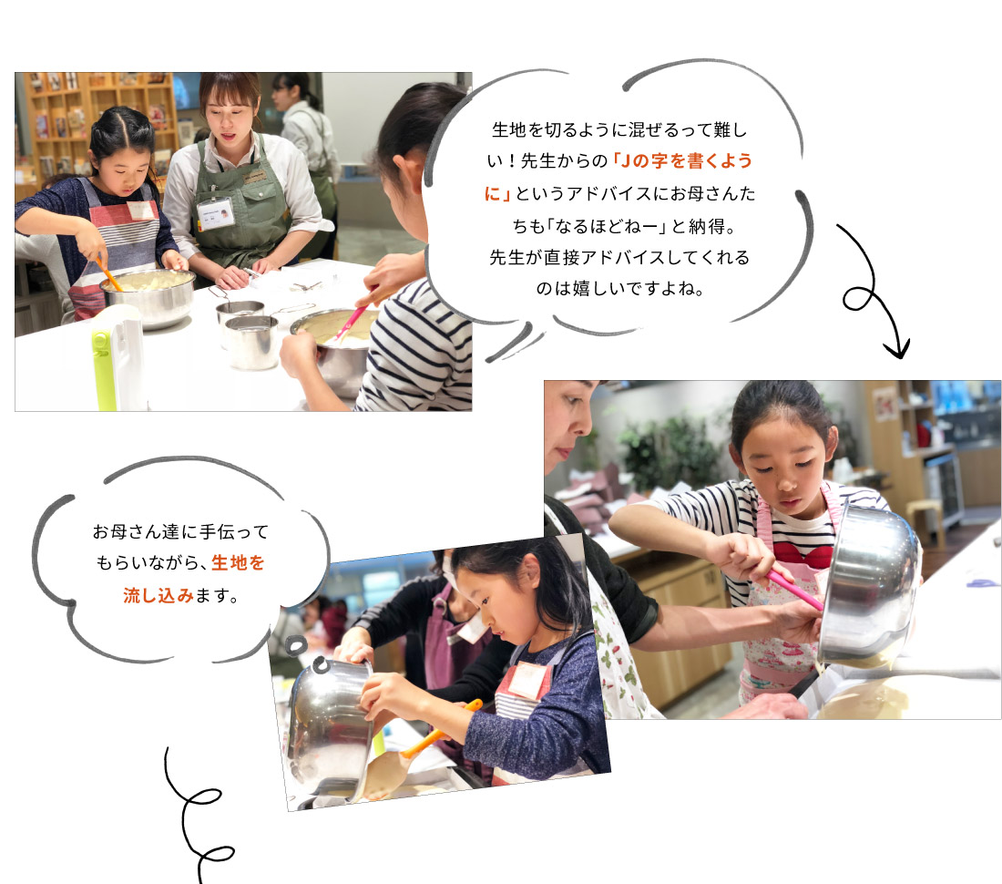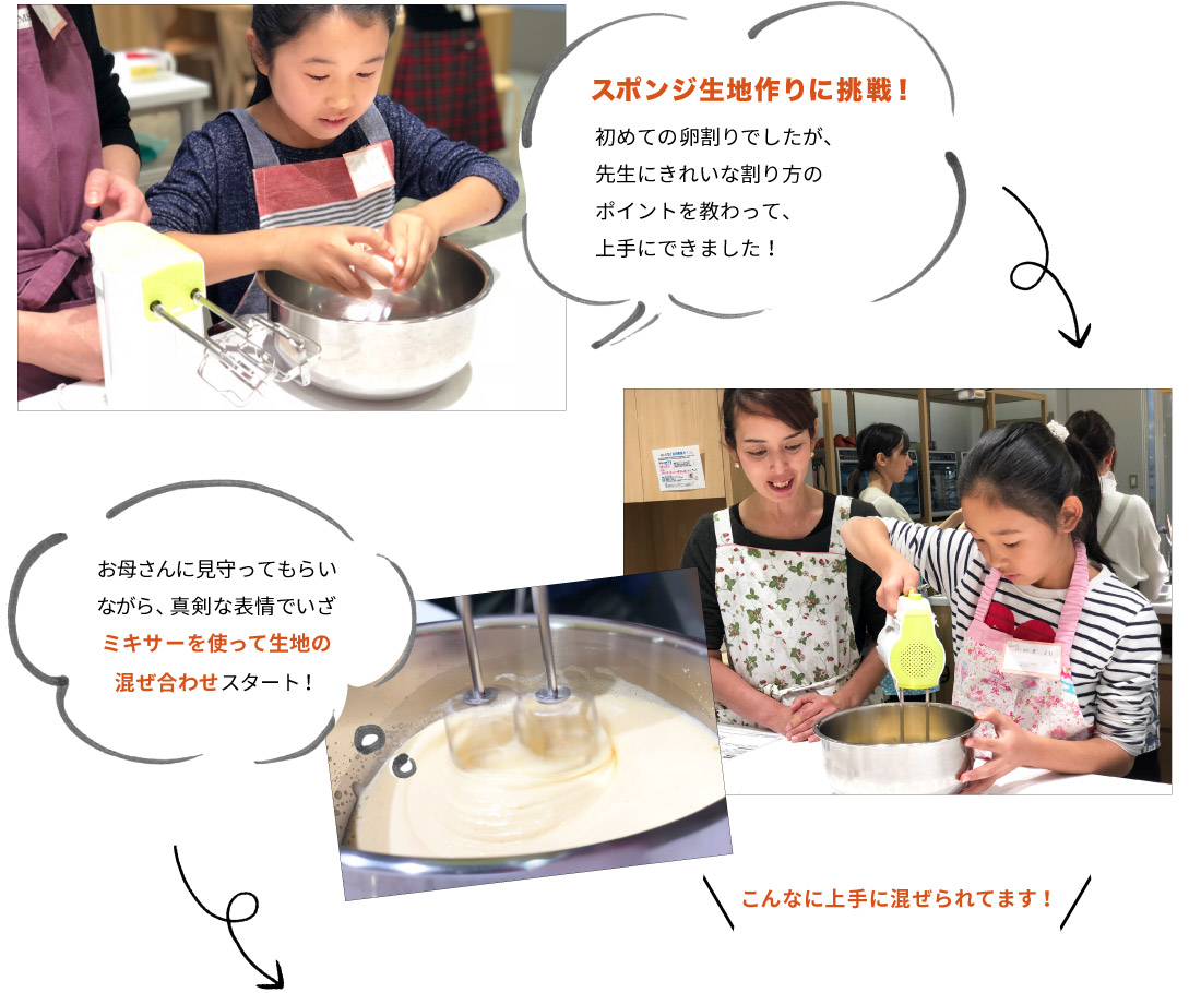 ご自宅でも卵焼きやお味噌汁を作っているという娘さん。お母さんもケーキ作りの経験はあるけれど、この機会に娘さんと一緒に教えてもらえたらと思い親子での参加をしてくださいました!