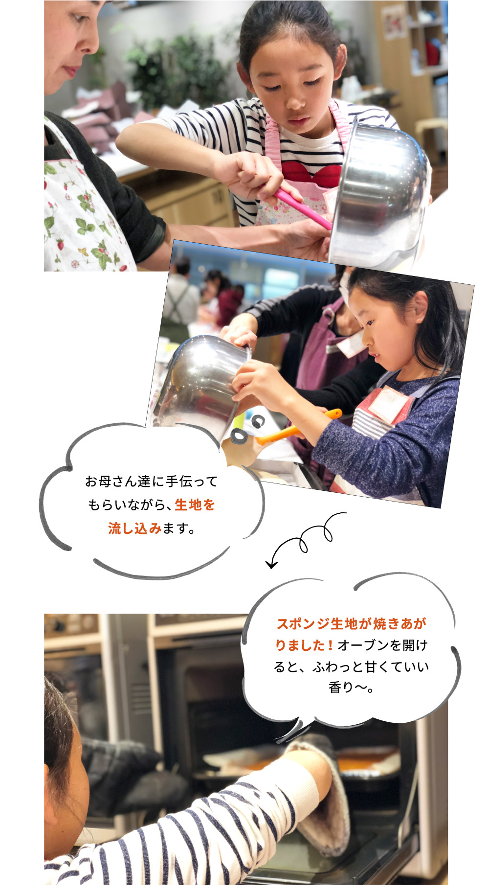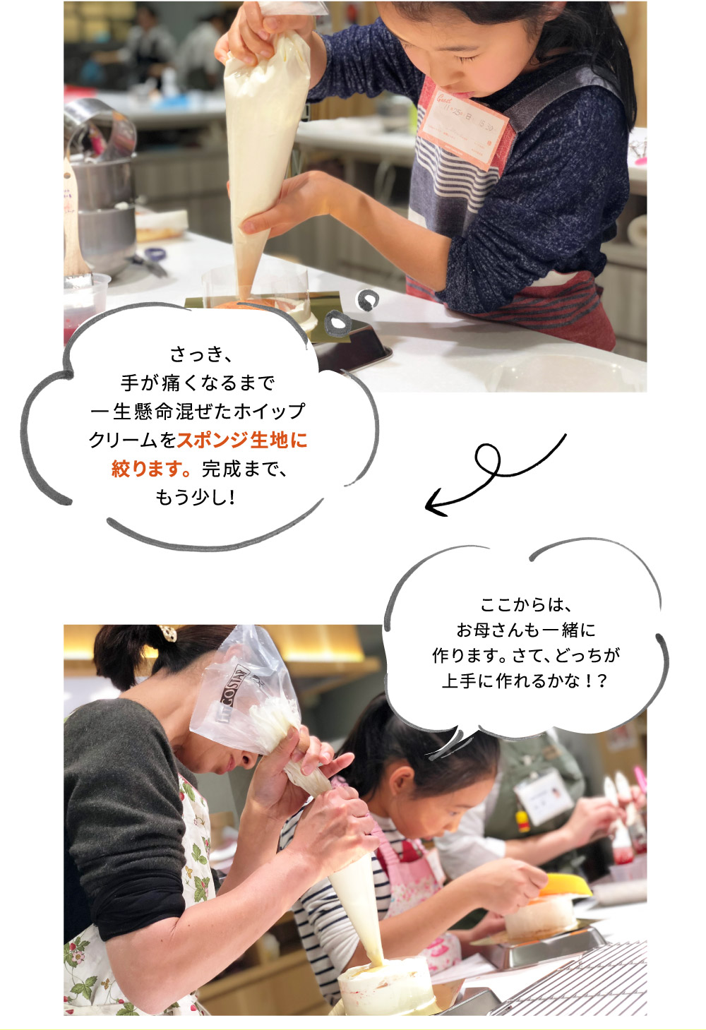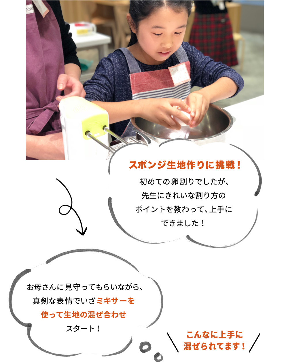 ご自宅でも卵焼きやお味噌汁を作っているという娘さん。お母さんもケーキ作りの経験はあるけれど、この機会に娘さんと一緒に教えてもらえたらと思い親子での参加をしてくださいました!