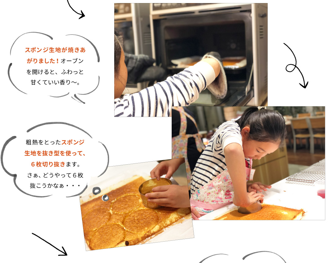 生クリームを塗るのが大変だったけど、美味しくできて嬉しかったです。また、お家でも作りたいです。
