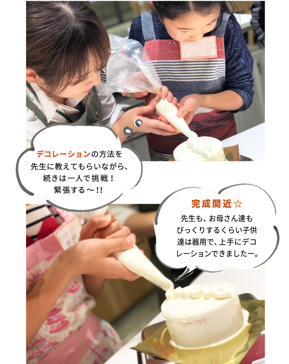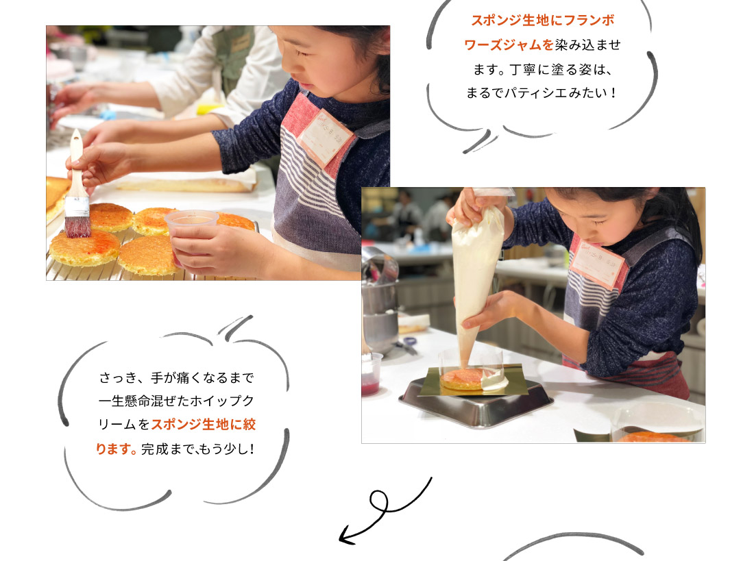 生クリームを混ぜるのが大変だったけど、楽しかったです。クリスマスには今日習ったケーキを自分でお家で作りたいです。
