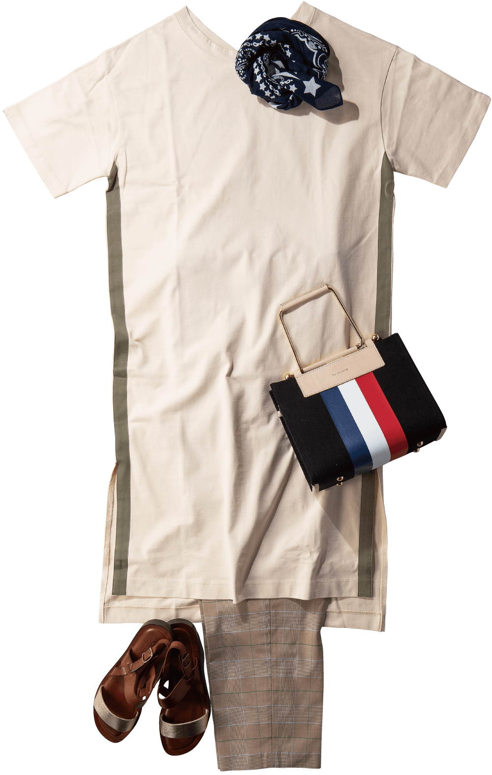 気負わず、着心地よく、なのにきちんと感がある大人のコーディネート。首元のスカーフとバッグでパリのエスプリを纏って。